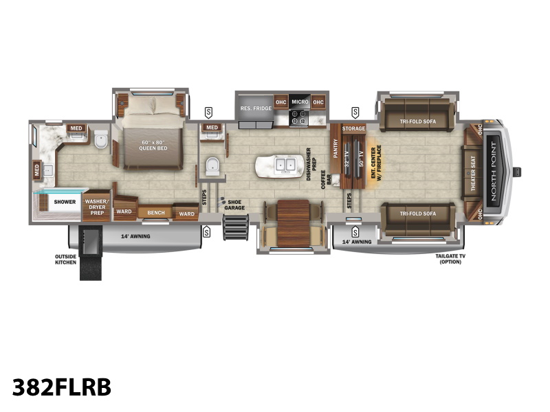 No details are spared in this luxury fifth wheel RV. With smooth towing, convenient features and luxurious style, the North Point can comfortably accommodate all kinds of travelers and groups.