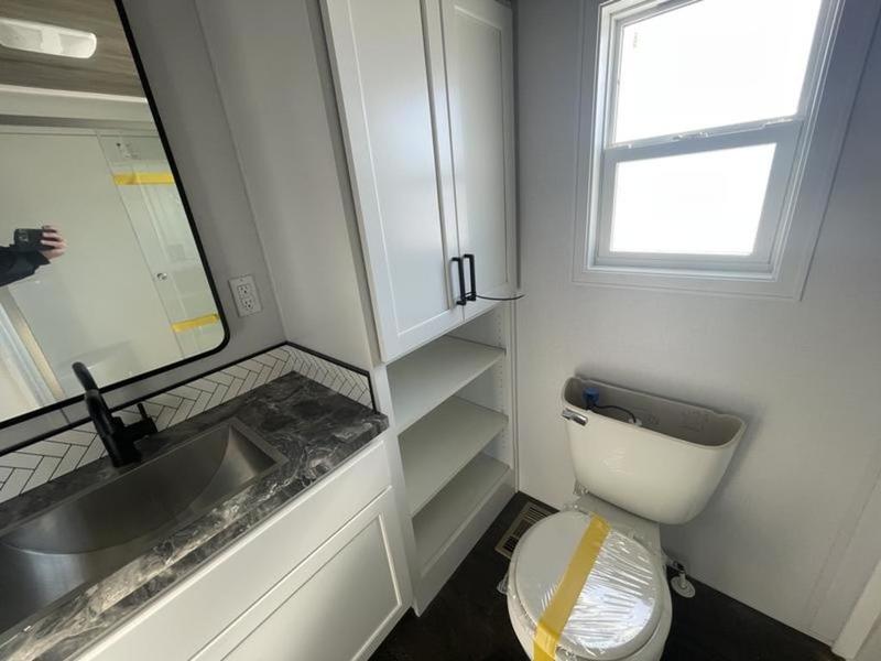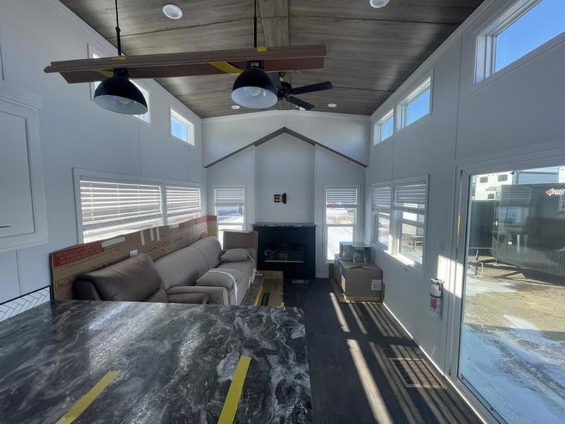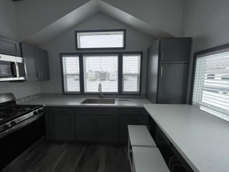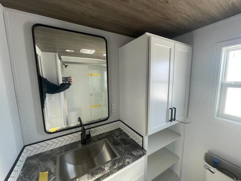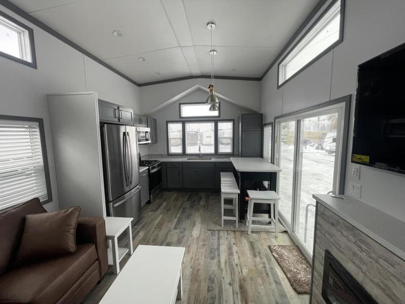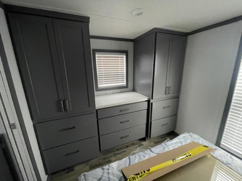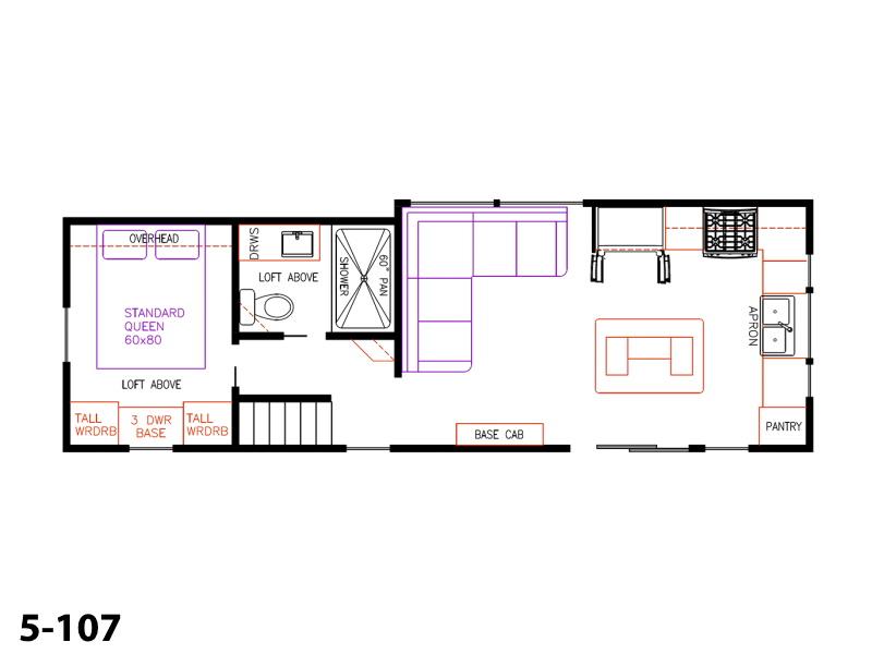 Elevation floorplans have been engineered to utilize the maximum 400 square feet in the most efficient way possible. Each Park Model can be built as a single, double, or non-loft, also giving the option of a straight or drop frame. Customers have the ability to choose between five front-end window designs, multiple bathroom layouts, and different wardrobe options, which are interchangeable in each floorplan. Many plans can accommodate amenities such as washer & dryer, dishwasher, larger refrigerator, or sectional sofa. Depending on the location of the unit, customers can select to have the floorplan flipped end-to-end or rolled side-to-side to best suit their needs.