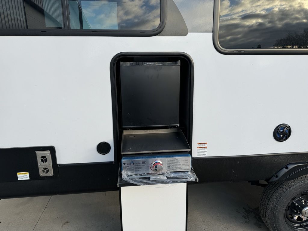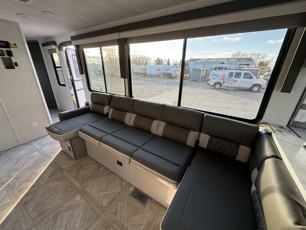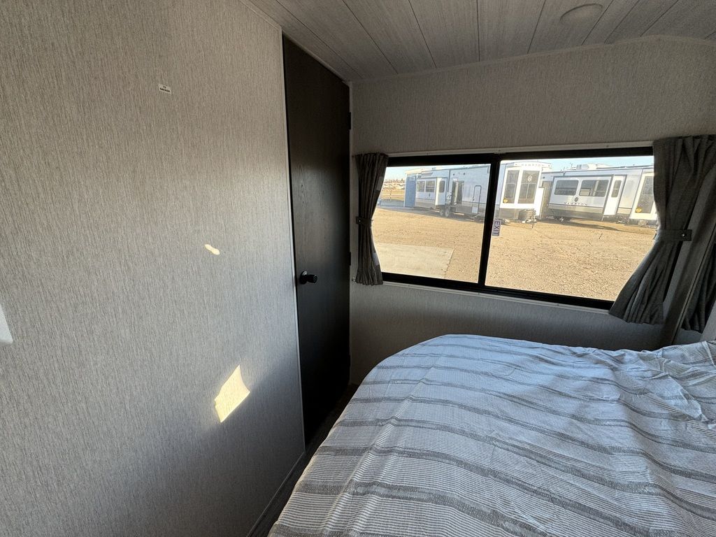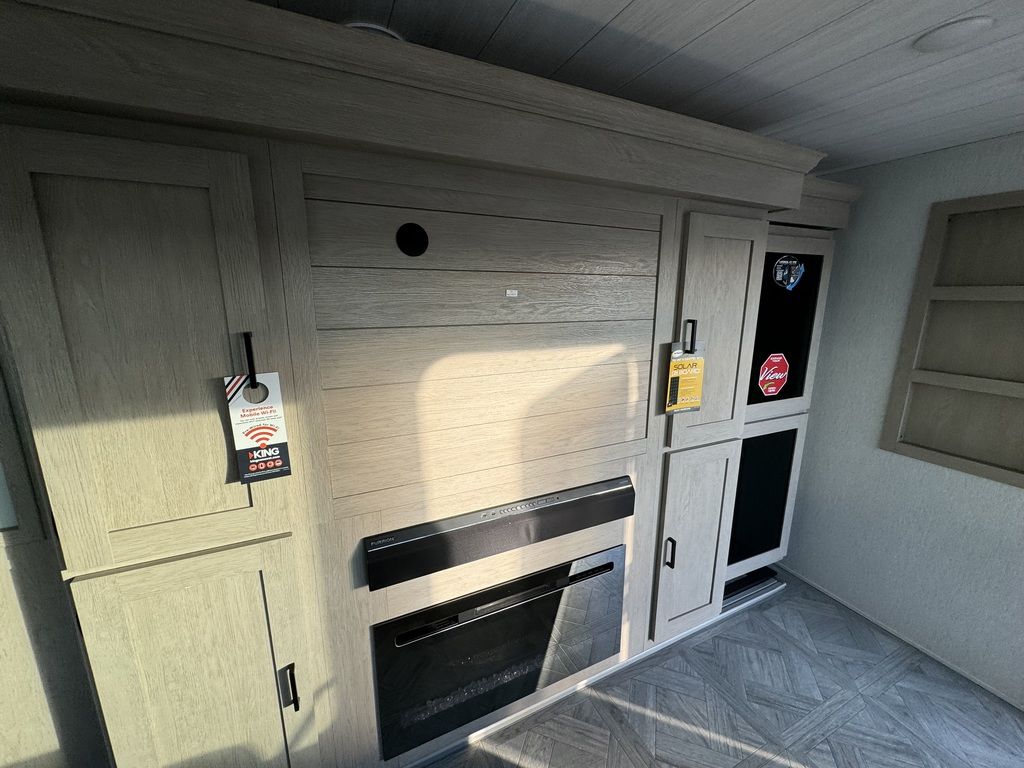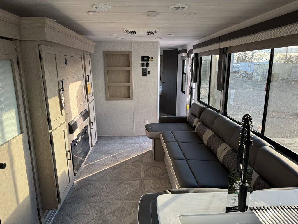 The 29VIEW offers standard hung fiberglass exterior and solid surface countertops. Features the Versa-Slide offering additional storage, bunks and capability to utilize as an office. This model bypasses a traditional dinette but offers 18 linear feet of countertop space and the 105 square feet of windows offers a view that is unrivaled in this segment.