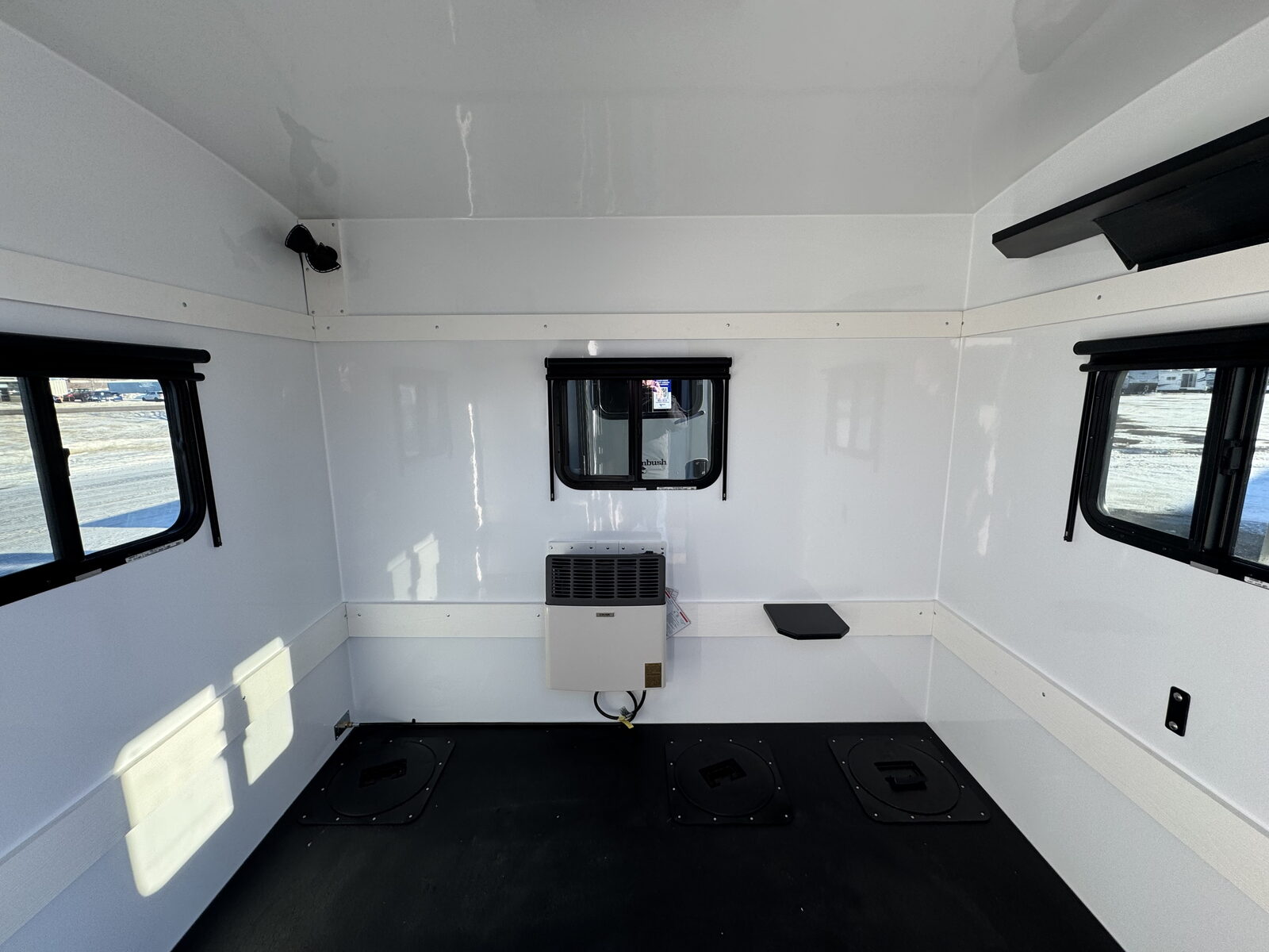 Optioned with Direct Vent Heater, 100W Solar Panel, 110V Gen Plug, 300W Inverter, Shades on Door & Window, Rod Holder, Black Trim Upgrade, Ambush Tow Bar Hitch Holder, 6.5' Shelf Assembly, Sonar Shelf, Reflective Decals plus more...This unit is not optioned with Captain Chairs.
