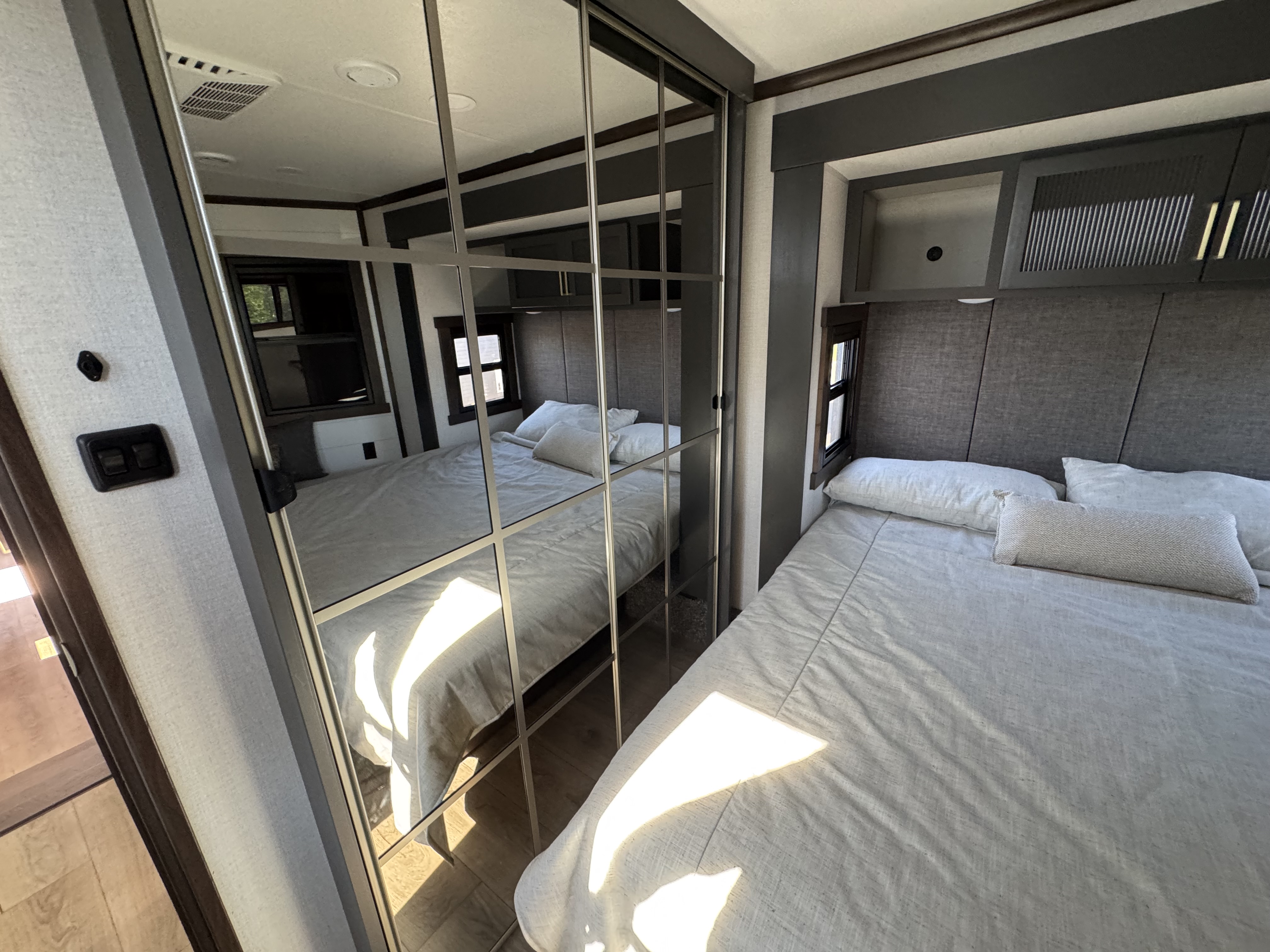 The 412FWC maximizes space with functionality. Step through the massive 38" entrance door and into the mud room, or relax on the L shape sofa and watch TV. This coach also features and area to work with a flip up desk, or an area to entertain with a wine bar. Interior features like custom cabinetry blends with modern amenities like a washer and dryer, adjustable shelves, king bed and more to provide the ultimate stay.