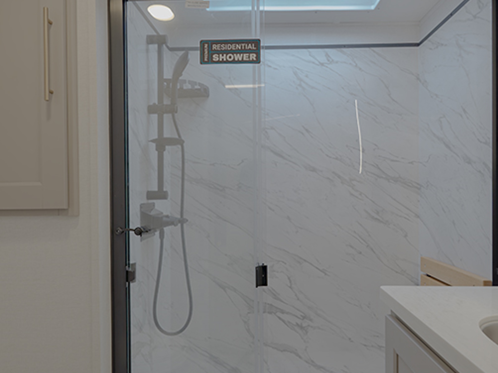 One-piece fiberglass residential shower