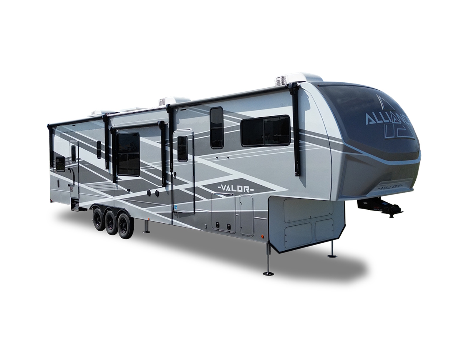 The Valor 36V11 toy hauler from Alliance RV is built to elevate your camping experience, combining rugged performance with luxurious comfort. With room for the whole family, this toy hauler features an 11' garage with an 8' weather-resistant ramp door, perfect for loading up your dirt bikes, ATVs, or other off-road gear. You'll also appreciate the dual 30-gallon fuel tanks, so you can keep your toys fueled and ready for adventure all weekend long.