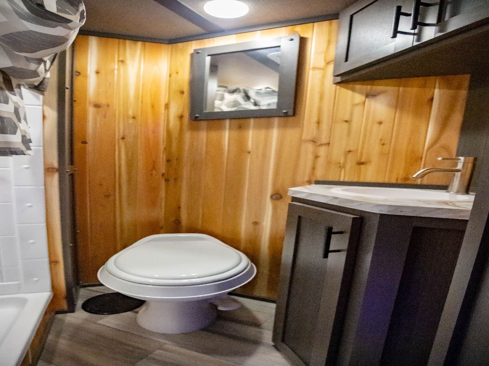 - Half Bath: Hot water heater, kitchen sink, toilet. Includes a freshwater tank and black tank.